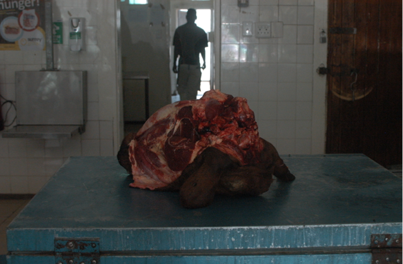 This met me upon entering the dispensation in Harare where my aunt purchases chicken parts for the butcher shop. Everyone in the shop was amused at my fascination with this goat (ox?) head on the counter; I was reminded how very little I know about where my American meat comes from.